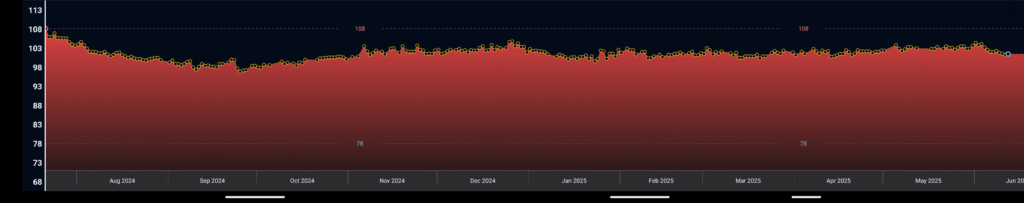 After a strong start in July 2024, life took over. I didn’t get back on track until the end of May 2025. However, I continued monitoring my weight and calories, even when I was doing poorly, so I understand now what works and what doesn’t. My next milestone is going below the three-digit mark and getting back to where I was in September 2024.